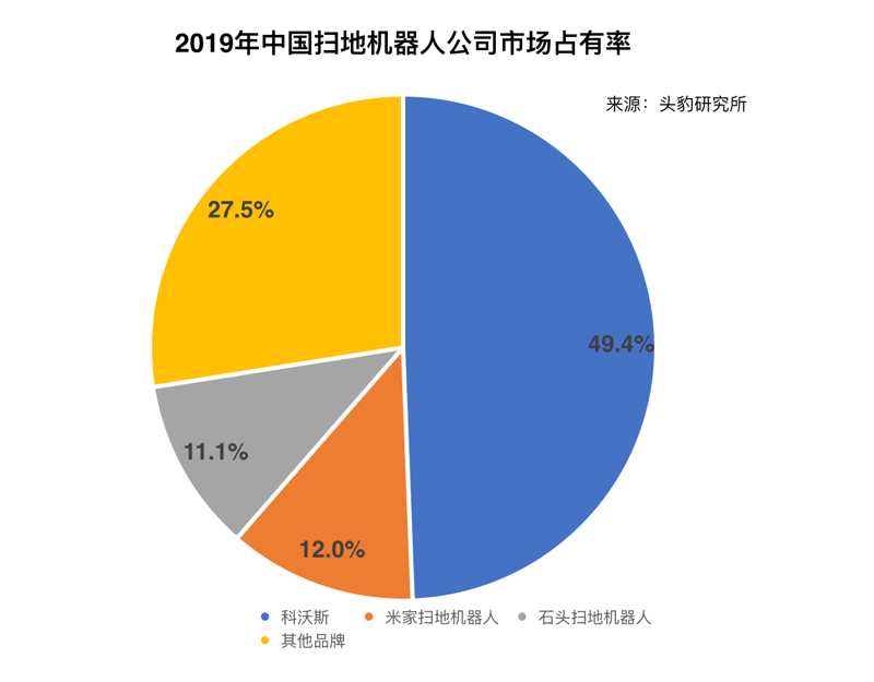 2019年的数据显示,在国内的扫地机器人市场上,科沃斯(603486.SH)稳坐头把交椅,占据接近一半的份额。石头科技的米家品牌和自有品牌加起来占接近四成。但是,科沃斯目前的市值只有412亿,大大低于石头科技。
