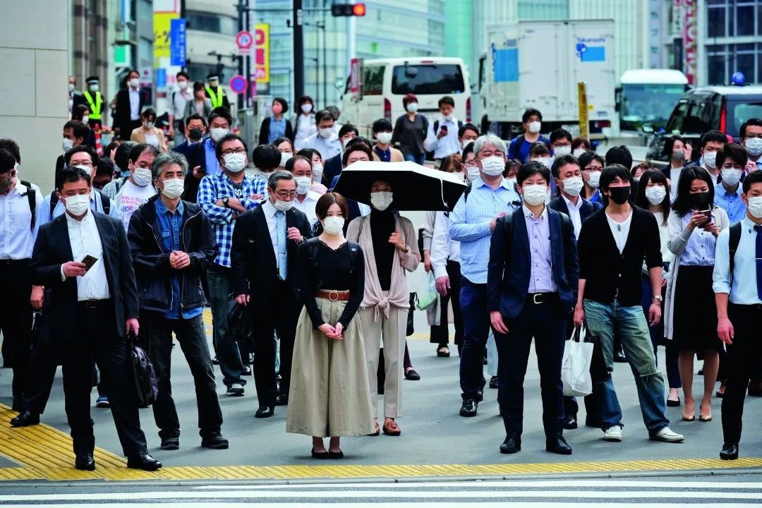 2020年5月26日,日本东京街头,人们带着口罩出行。受新冠疫情影响,2020年的一些跨境就医行程无法实现。图/法新