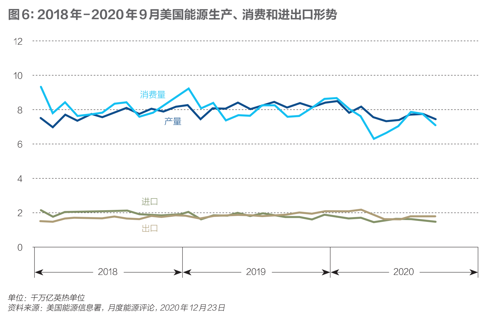 2019年,自1957年之后,62年来首次美国国内的能源产量大于消费量;自1952年之后,67年来首次美国的能源出口量大于进口量。自20世纪70年代第一次石油危机后,美国历届政府一直努力追求的能源独立梦想,终于变成了现实。2020年,蔓延全球的新冠肺炎疫情并未改变美国能源独立的大势。2020年前九个月,美国一次能源的总产量继续大于消费总量;出口总量继续大于进口总量。