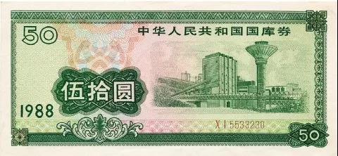 1981年以后至1996 年的十多年内,发行的国库券都是实物券,面值有1 元、5 元、10元、5 0 元、1 0 0元、1000 元、1万元、10万元、100万元等。