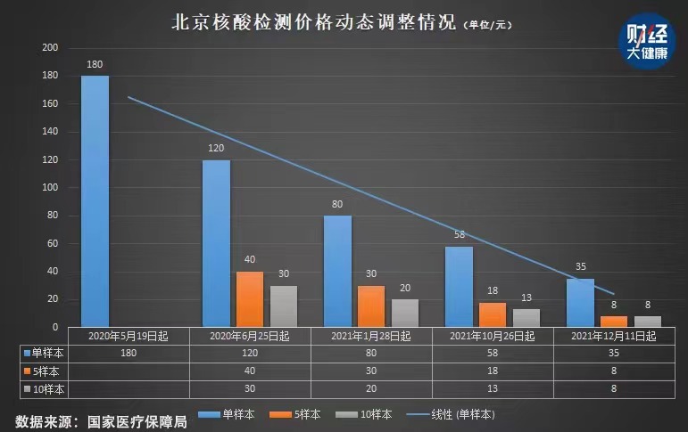 从各地单样本检测的政府指导价看,截至12月22日,最低为35元。