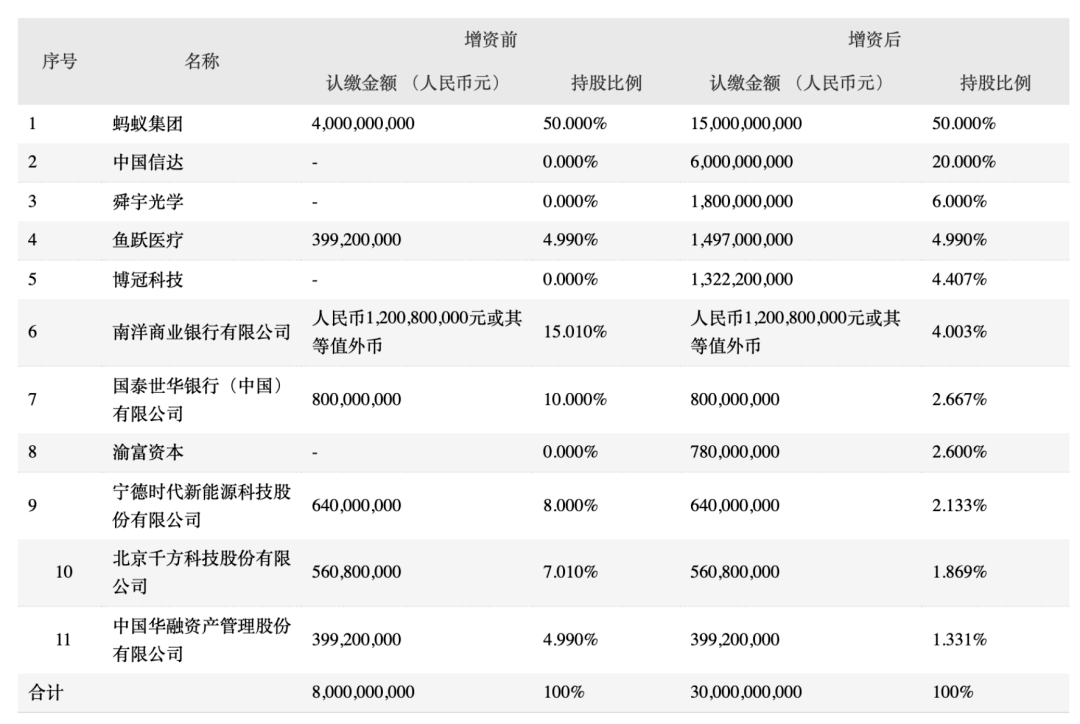 增资完成后,蚂蚁消金资本金将由80亿元增至300亿元。