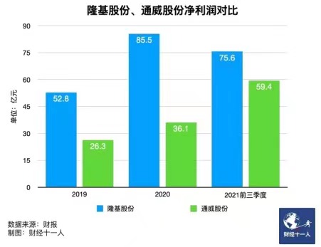 在体量和行业地位上,通威已与隆基相当,市场对通威这位“后起之秀”寄予厚望。“隆基市值虽处于高位,但硅片已经没有绝对优势,保持和突破的压力加大。通威的硅料优势还可以保持,且在上升通道。”一位光伏企业前高管认为。