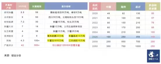 硅业分会已就投资过热做出警示,硅料短期供应持续紧张,未来2-3年产能将持续释放,中长期或出现供大于求局面。目前硅料企业宣布的规划产能已超出300万吨,可以满足1200GW的装机需求。考虑到庞大的在建产能,硅料企业的好日子很可能只剩下2022年。