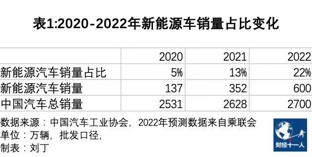 根据乘联会预计,2022年中国新能源汽车的销量占比将提升到22%左右,延续2020和2021年的提升势头。