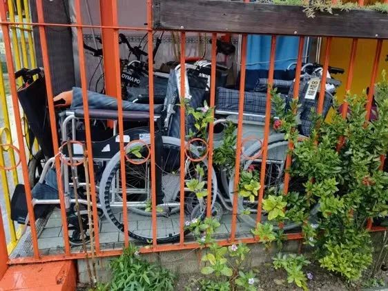 随着第五波疫情持续蔓延,减少感染、发病、重症,特别是老年人死亡率高、养老院舍感染问题,正成为香港抗疫体系面临的核心考验。图为香港一家养老院近日因疫情减少老人出行后被放置起来的轮椅等设施。《财经》记者 焦建/摄