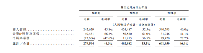 与此同时,这项占营收大比重的业务却有着达到50%的毛利率,报告期内来自艺人管理的毛利率最低也有45.8%。
