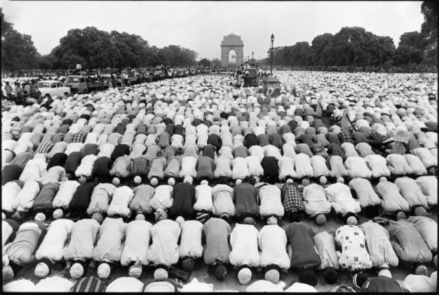 1986年,印度新德里伊斯兰教回民做礼拜。摄影 / 刘香成