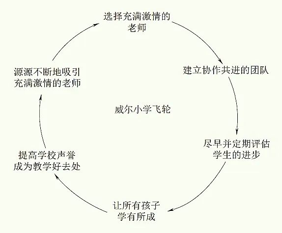 前期的努力直接带领威尔小学到达了飞轮的第五步:提高学校声誉。不仅是因为威尔小学的学生成绩优异,同时也因为这里有很棒的教学氛围。