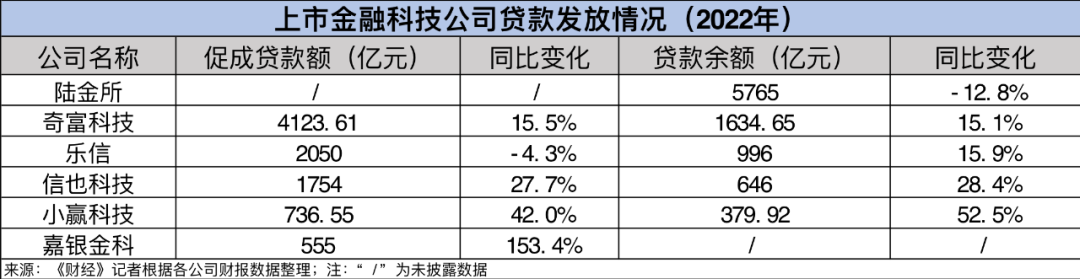 紧随其后的是奇富科技,贷款余额约1635亿元,是六家金融科技公司中除陆金所控股,在贷规模唯一突破“千亿元”的公司。财报显示,2022年,奇富科技贷款余额同比增幅约为15.1%;年内促成贷款额约4124亿元,同比增长约15.5%。