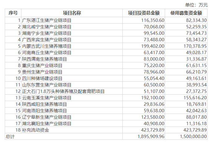 正大股份本次IPO预计募集资金150亿元,其中42.37亿元用于补充流动资金,其他资金将投向17个国内的生猪产业链项目。