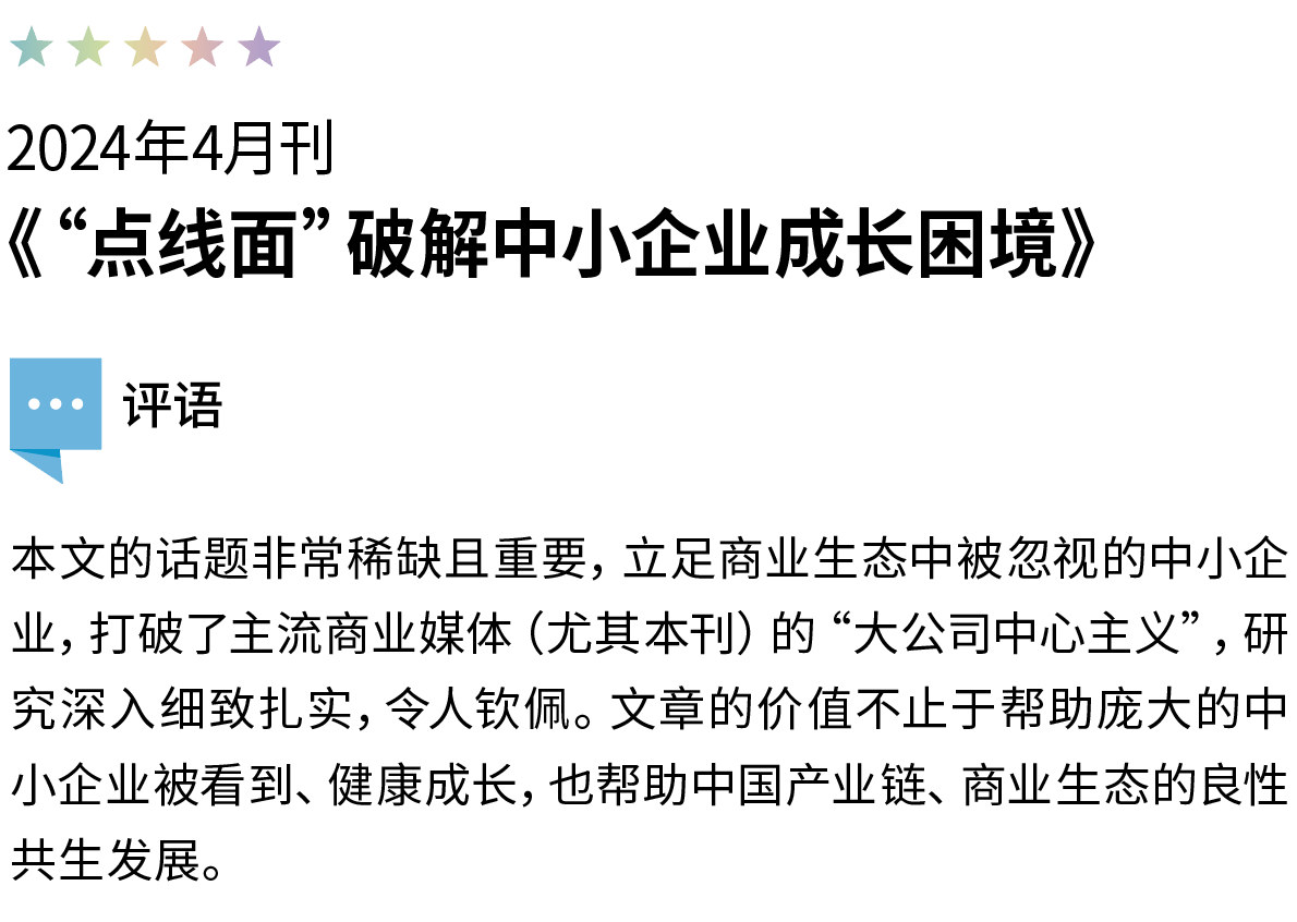 破解成长困境,中小企业需要从“点”“线”和“面”多个层面进行突围,专精特新发展、技术扩展适应和平台生态参与是可行的策略路径。