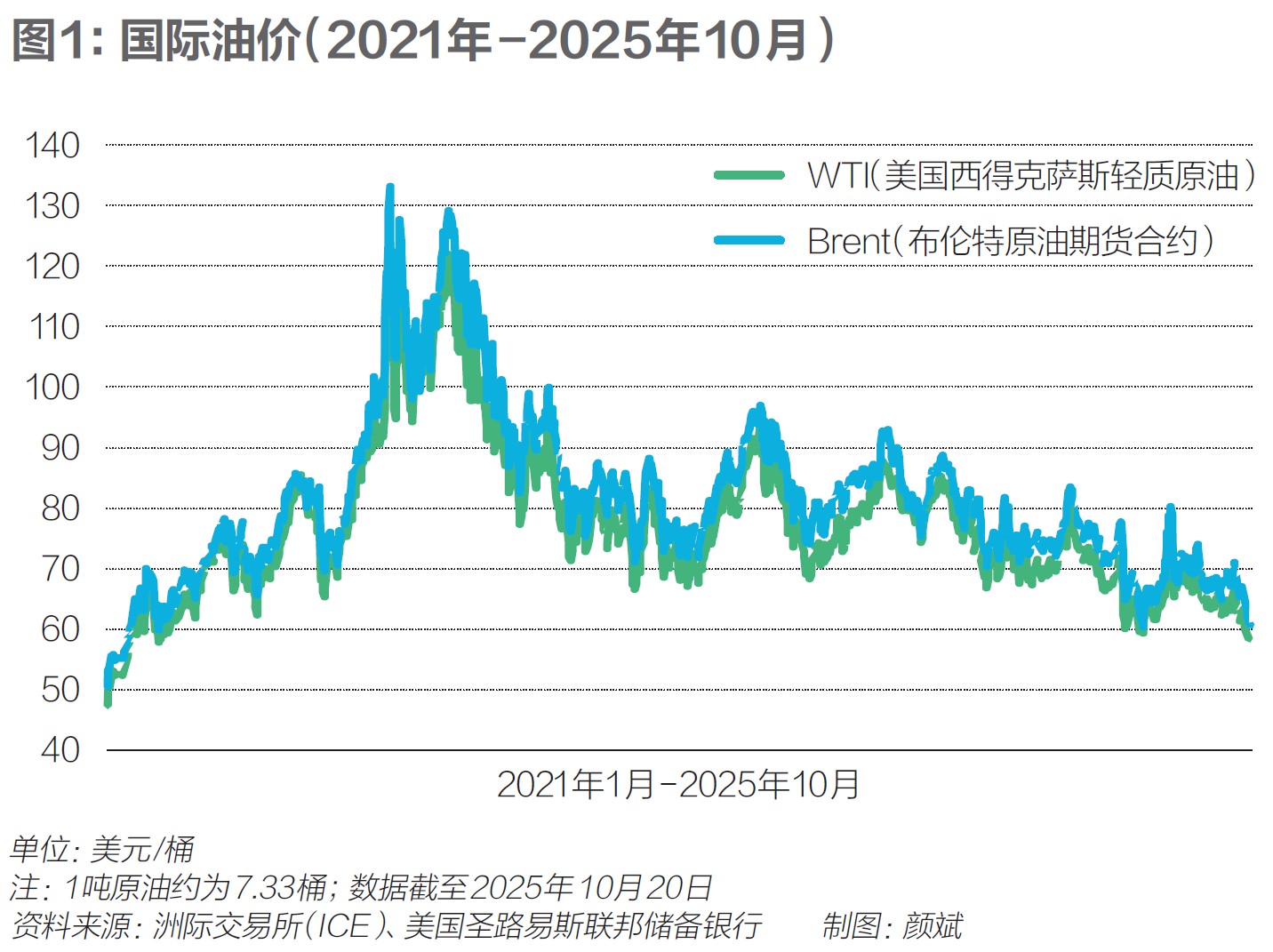 2025年三季度以来,国际油价在70美元/桶以下持续波动,价格中枢处于四年来低位。