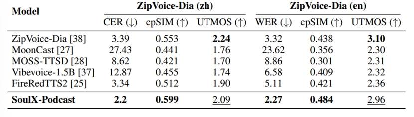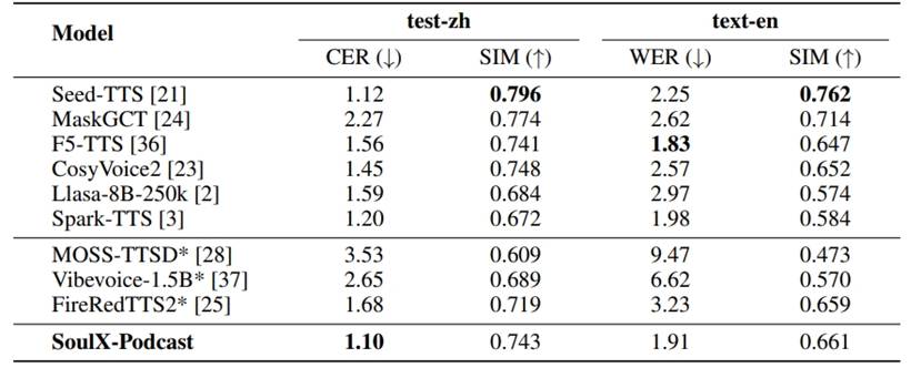 SoulX-Podcast在通用TTS上的表现,*官方模型的复现结果