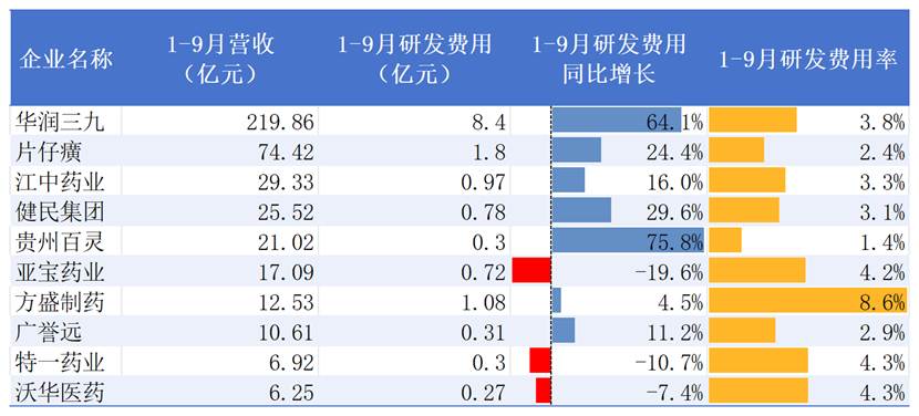 除了并购带来的业务多元化,华润三九的深度转型得益于公司持续加码研发投入,在三季度