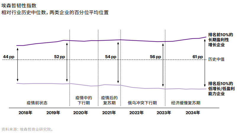图二 卓越绩效企业在颠覆时期保持稳固增长并扩大优势