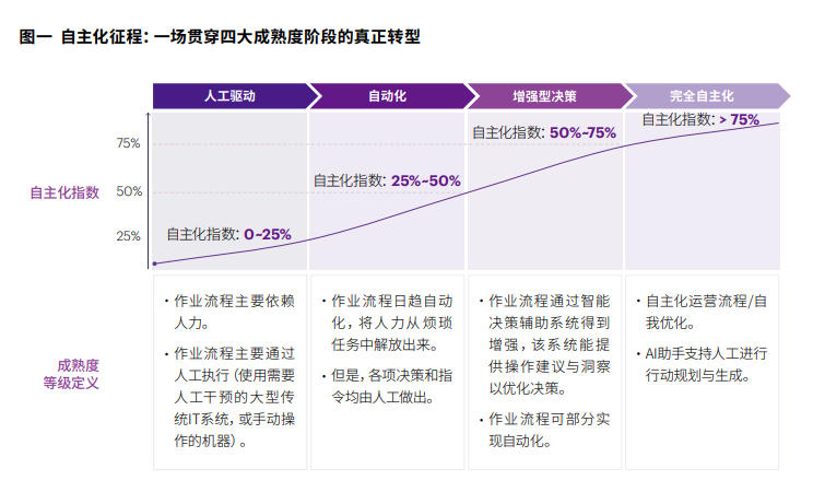 我们的调研发现,通过人工监督关键流程节点(即“人机协同”)来实现自主运营,能够显著提升效率、敏捷性和可持续性,这对于适应动态环境中的突发变化至关重要。这种方法既能充分发挥AI驱动系统的强大能力,又能保留人工监督,以进行战略决策与必要干预。