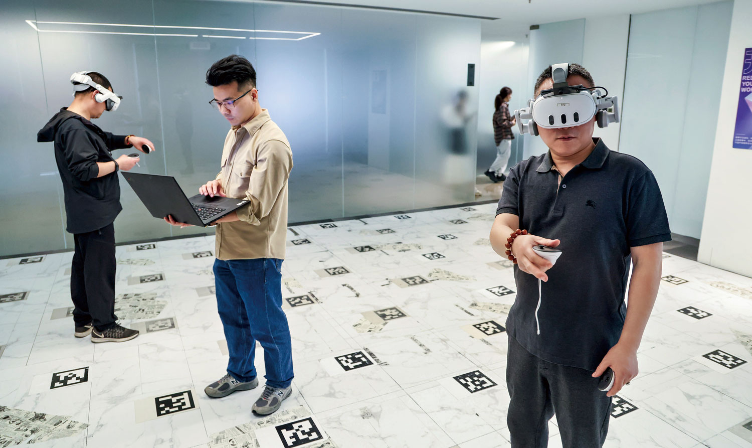 2025年3月4日,在位于深圳市南山区的元象科技实验室,研发人员进行VR设备测试。图/新华