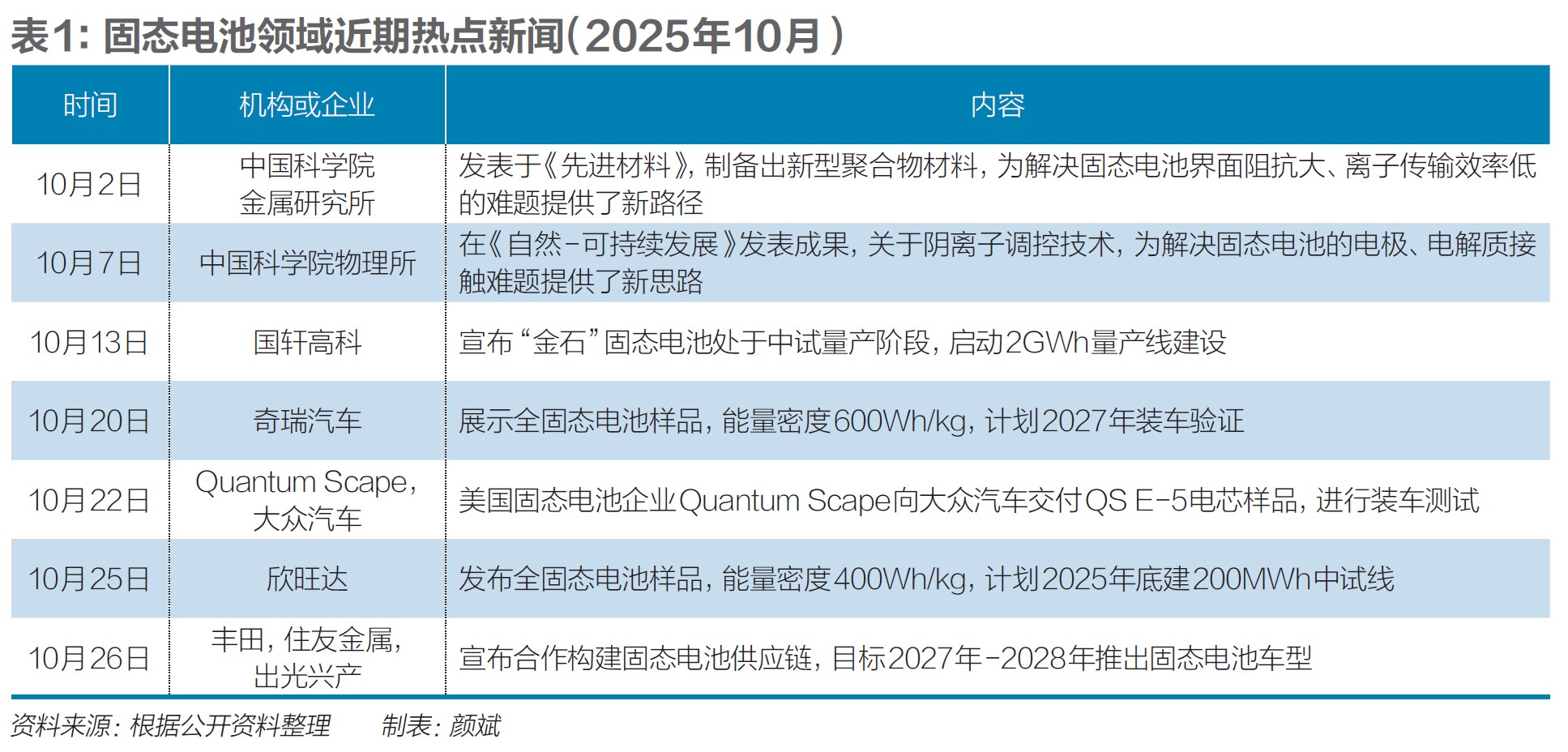 规范命名也是为当前火热的市场情绪降温。今年以来,固态电池领域的技术突破、样品发布和新进展披露接连不断,将市场热度推向新的高度。2025年10月,有关固态电池的重大新闻频繁见诸报端。