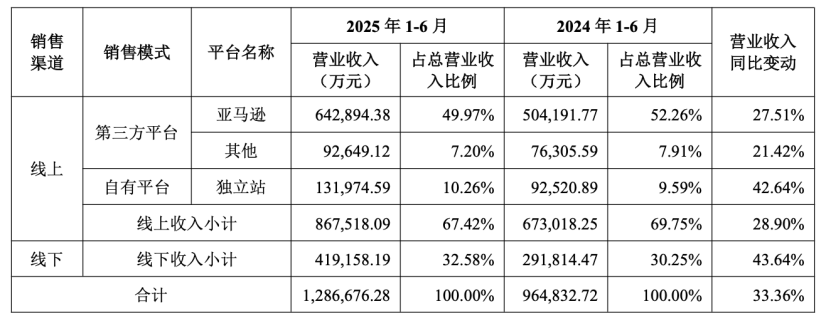 (图/安克创新2025年半年报显示的公司分渠道营业收入情况)