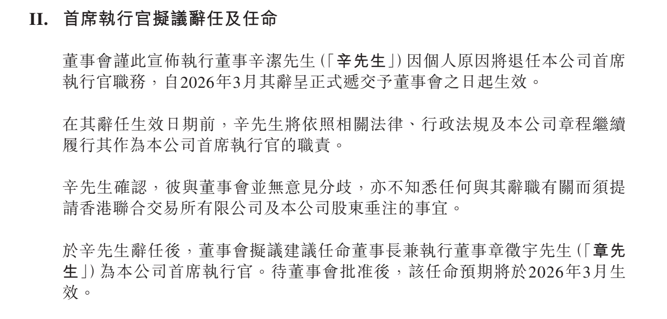 11月11日,连连数字公告称,公司现任首席执行官辛洁因个人原因,将于2026年3月辞去首席执行官职务。辞任生效后,辛洁将继续以顾问身份为公司产业生态建设和资本运作提供专业支持。连连数字董事长兼执行董事、创始人章征宇将于2026年3月正式出任首席执行官。章征宇自2009年创办连连数字以来至2023年3月,一直担任公司的董事长兼首席执行官。