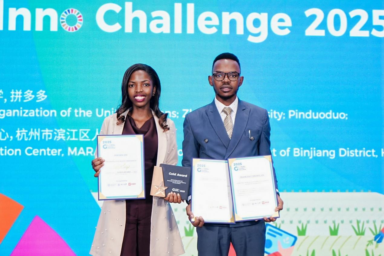 ▲获得2025全球农创客大赛金奖的SafeSip团队代表,赛后合影留念。(傅俊豪 摄)