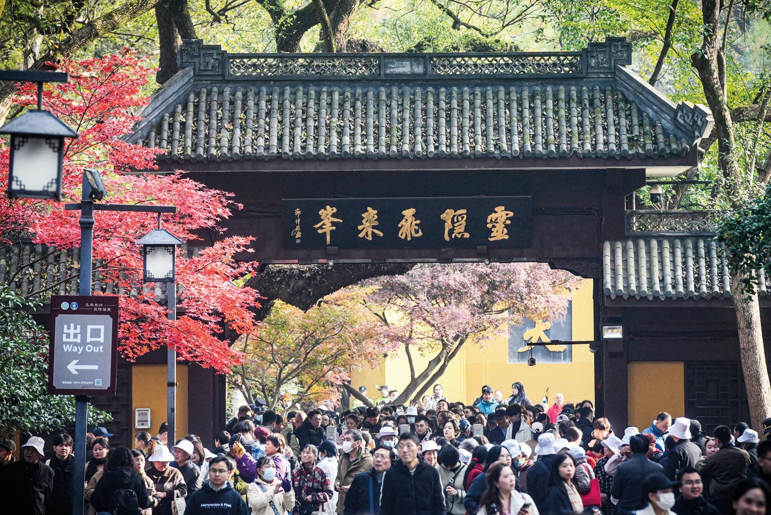 2025年12月1日,灵隐飞来峰免票首日迎大批游客。图/IC