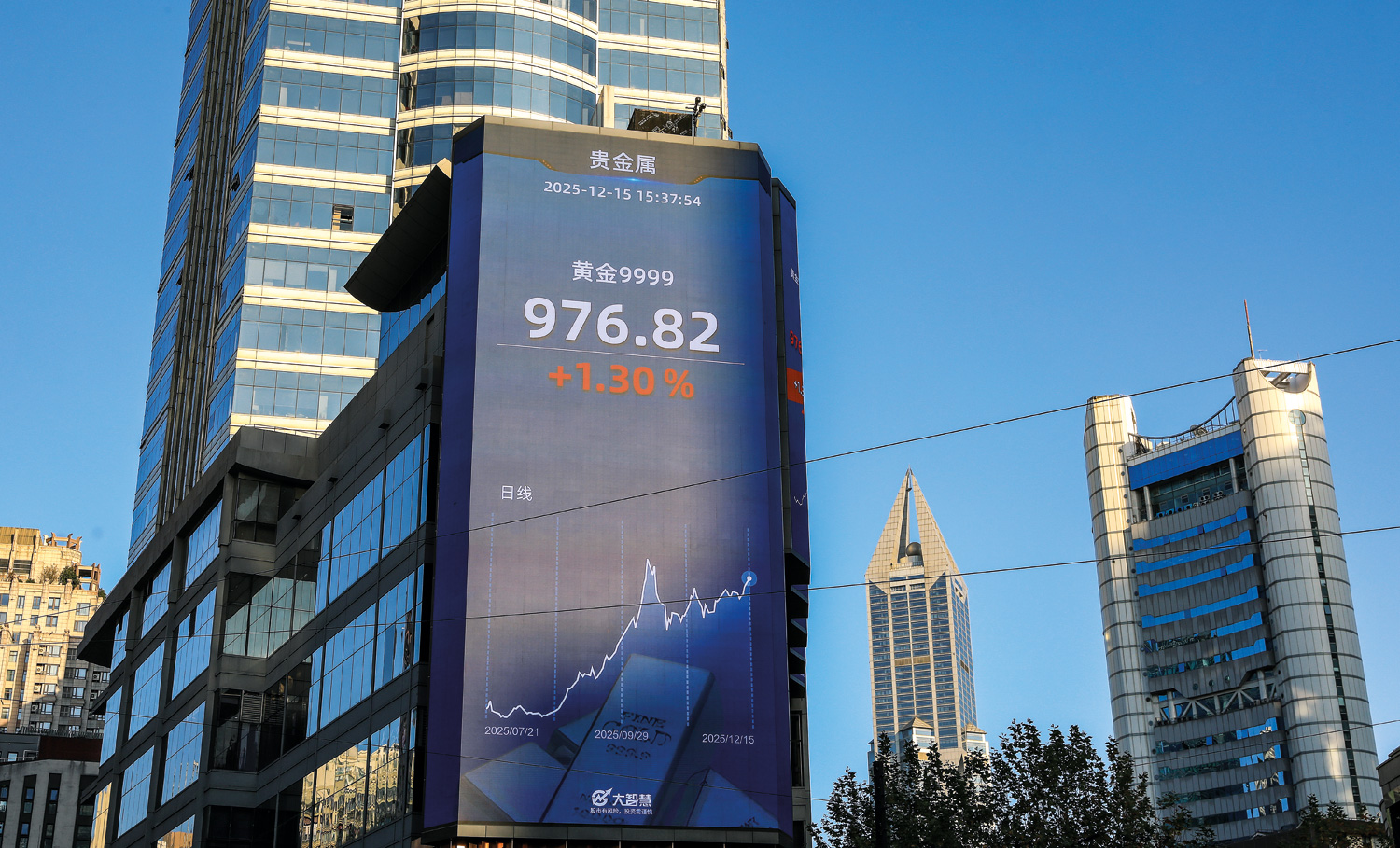 2025年12月15日,上海黄金交易所的黄金9999报976.82元/克。图/IC