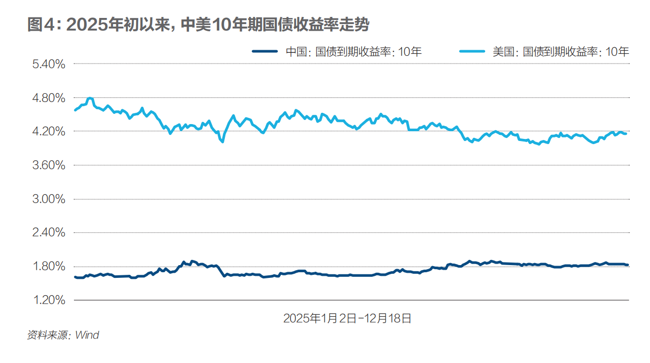 时隔一年,2025年中央经济工作会议延续了“适度宽松”的货币政策基调,但10年期国债收益率稳定在1.8%以上,中美利差倒挂幅度也已收缩至不足2.3个百分点。