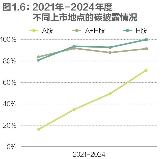 1.3碳披露:覆盖率持续增长,各上市地点披露水平趋于均衡