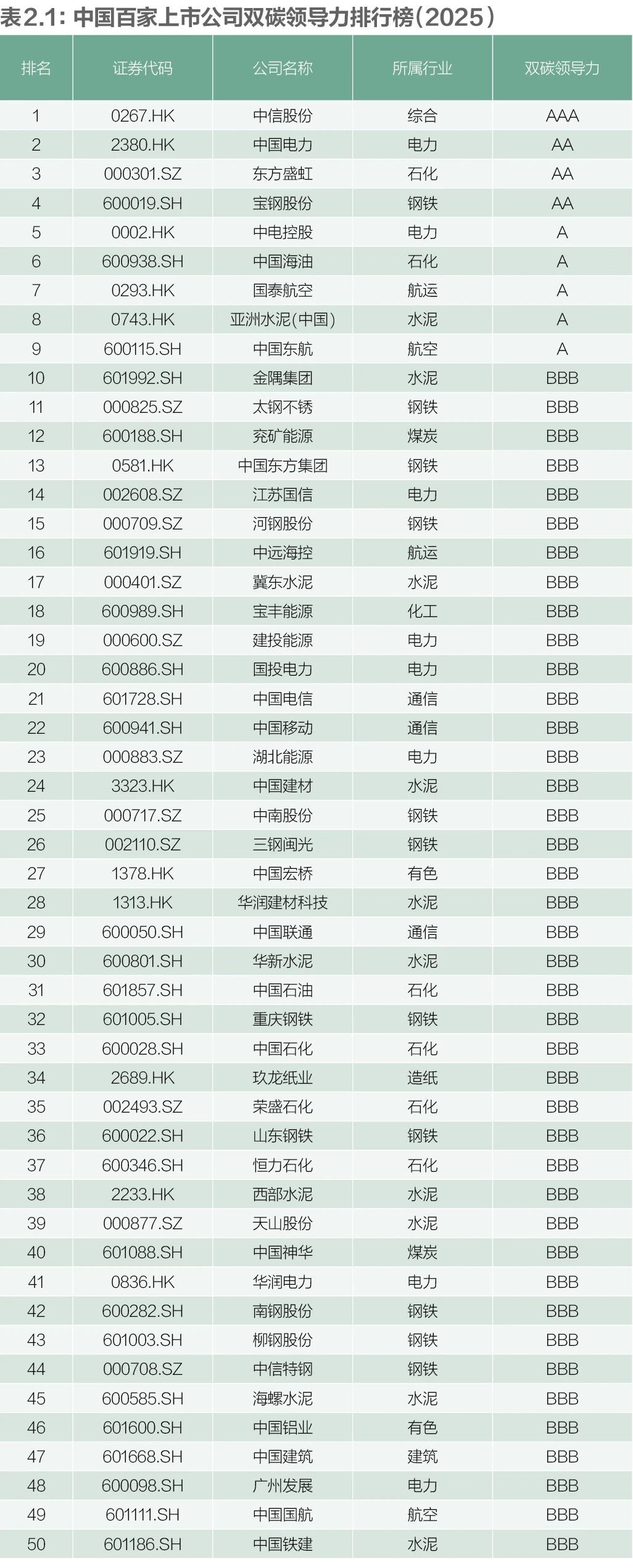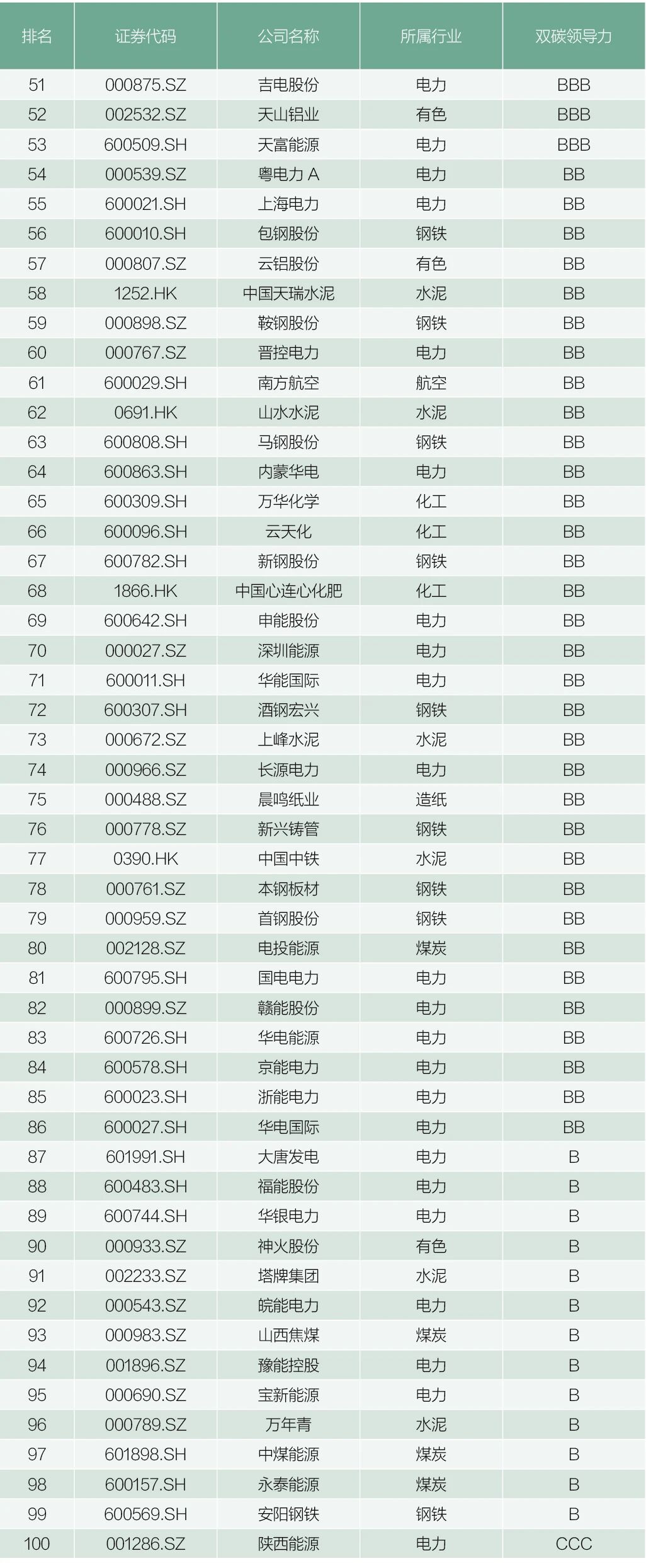 中国百家上市公司双碳领导力排行榜