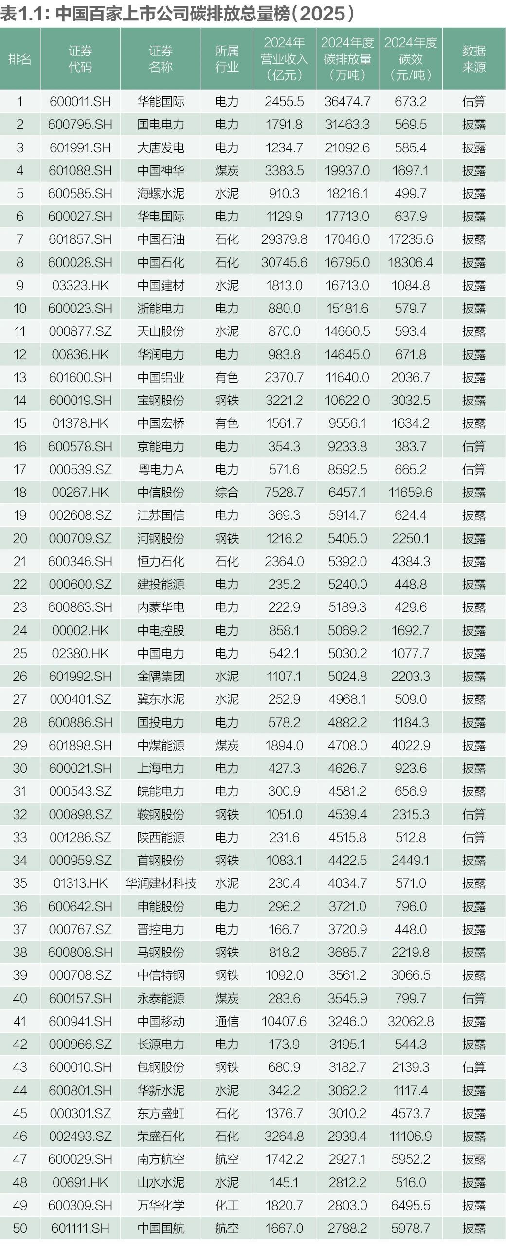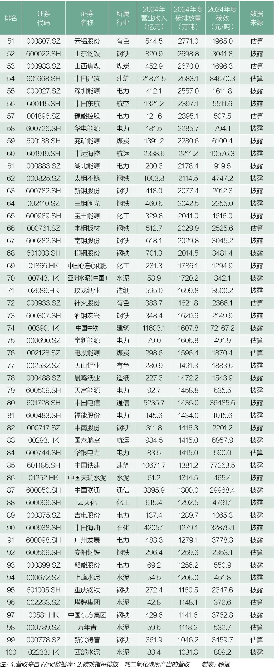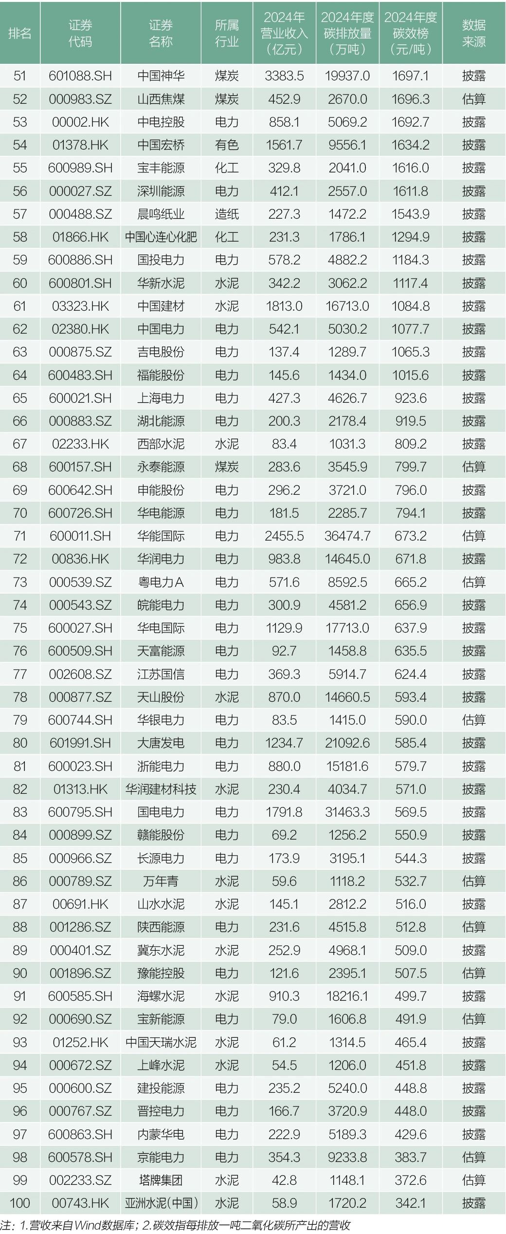 中国百家上市公司碳排放榜(总量榜&碳效榜)