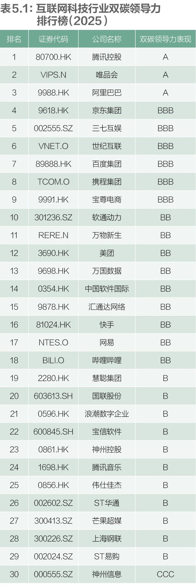 互联网行业双碳领导力榜