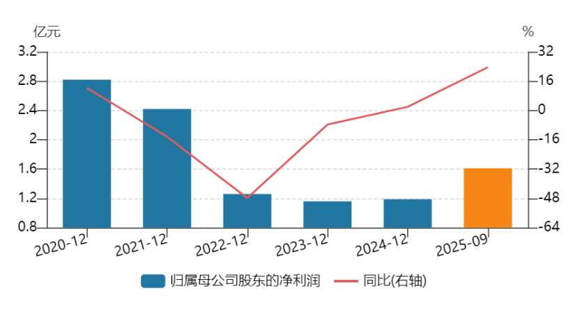 2025年前三季度,公司实现营业收入12.41亿元,同比增长2.90%;归母净利润1.61亿元,同比增长23.61%;扣非净利润1.54亿元,同比增长14.42%。