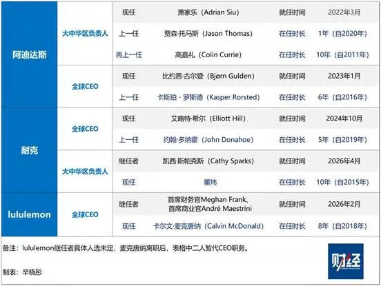 耐克和阿迪达斯至少选定了CEO继任者,运动行业中市值排名第四的lululemon对下一任CEO人选至今悬而未决。在此之前这家公司已面临业绩压力。2025财年前三个财季(2025年2月至10月)增速放缓,lululemon净利润分别同比下滑2.13%、5.6%和12.8%。