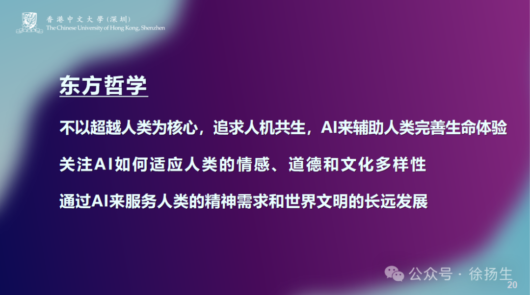 东方哲学,“智能”本质上还是围绕人性,人是有灵性的,机器不应以超越人类为核心,人机应该共生,AI应该辅助人类完善生命的体验。