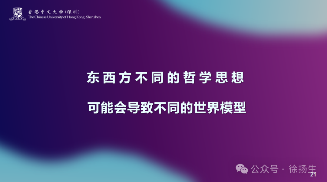 东西方哲学思想,我认为对人工智能是有指导作用的,我们正在构建的世界模型,这个模型怎么建?什么是智能?如何来评价智能?什么叫“好”的智能?AI与人的边界在哪里?AI应该做人们心目中的“好孩子”吗?我们到底在追求什么?是在追求真理,还是在追求共识?这些问题不先弄清楚,AI的走向很可能会不一样。