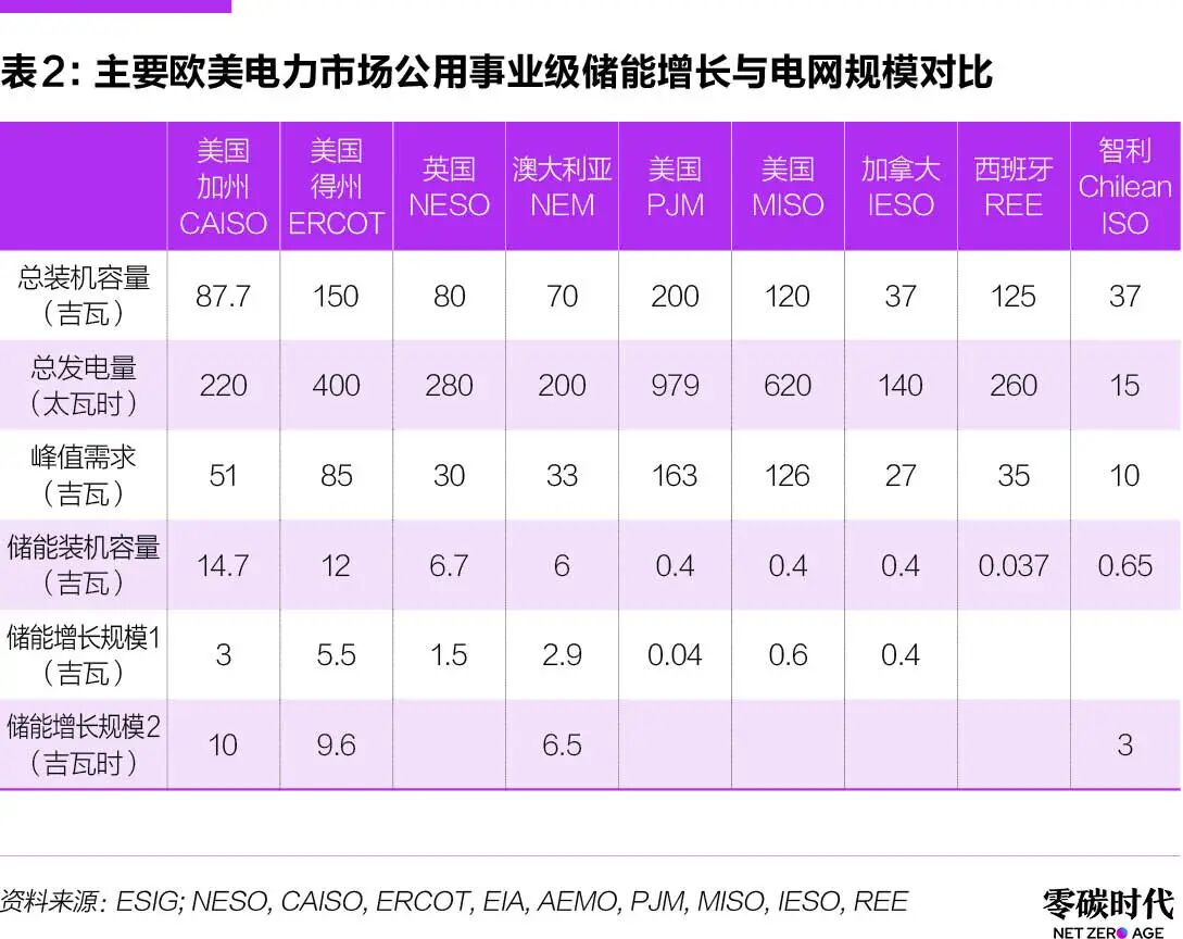 与全球主要电力市场相比,澳国家电力市场公用事业级储能的增长率位居前列。笔者根据ESIG等统计信息整理见表2。