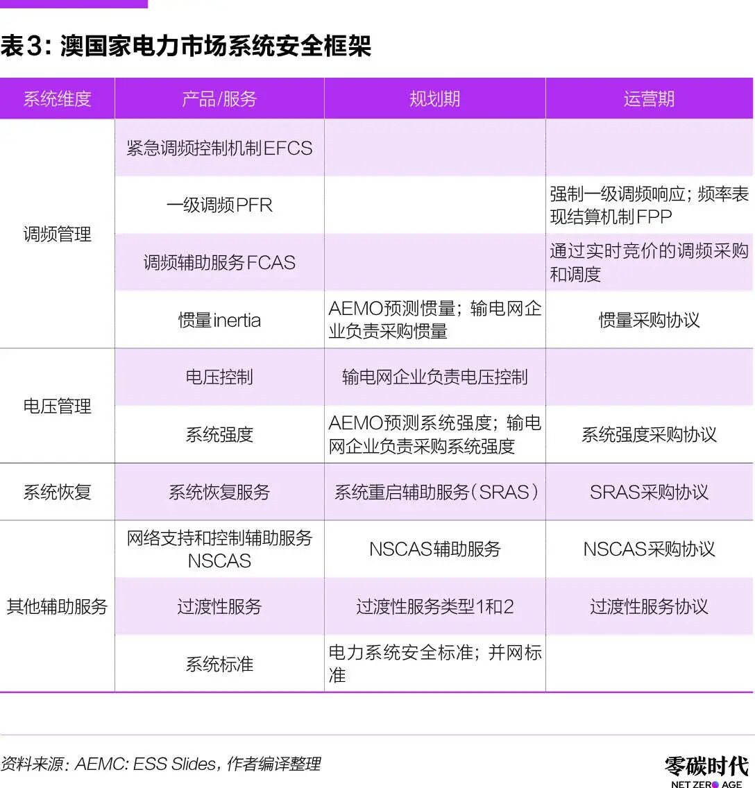 澳国家电力市场机制仍有改进空间,如辅助服务收入品种不及英美等成熟市场丰富,部分储能可提供的服务尚未形成市场化产品机制。这与现行的系统安全框架(NEM Security Framework)密切相关。