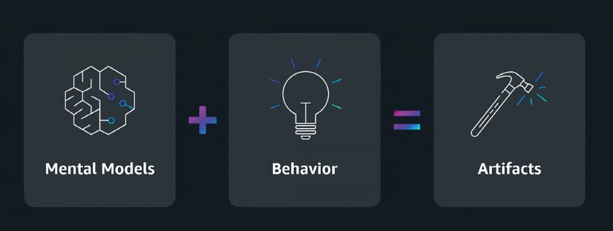 心智模型是我们理解世界的方式,也是驱动决策的底层逻辑;行为是基于这些模型所采取的行动;而产物则是行动留下的结果——可能是代码、文档、流程,也可能是一栋办公楼。