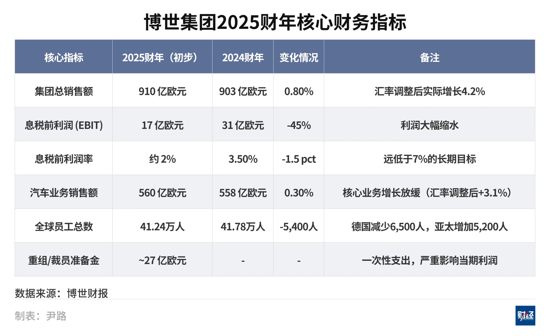 利润端则大幅下滑,息税前利润(EBIT)从31亿欧元缩水至17亿欧元,降幅45%。息税前利润率更是降至约2%,这一数字不仅远低于2024财年3.5%的水平,也与公司设定的长期目标7%利润率存在较大差距。集团的核心业务汽车零部件是最主要的拖累。