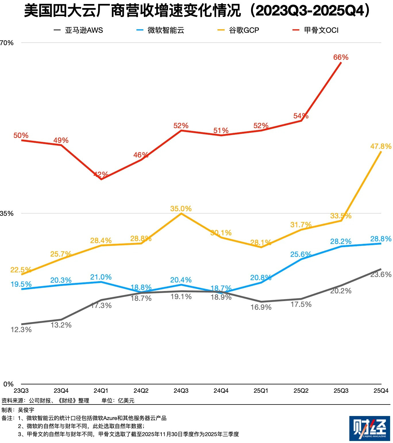 2025年以来,转型AI云正在成为美国四大云厂商——亚马逊AWS、微软Azure、谷歌GCP、甲骨文OCI的共同战略目标。