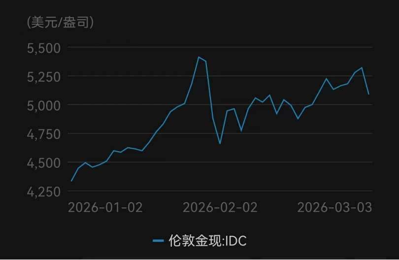3月4日,黄金重拾涨势,一度突破5200美元/盎司,日内涨超2%;3月5日,现货黄金价格再次迎来波动,一度失守5070美元/盎司,日内跌超1.4%。