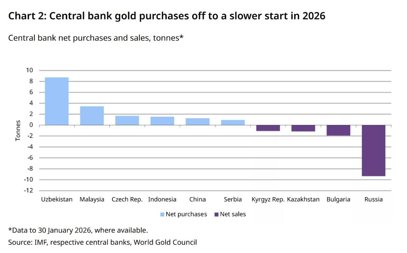 值得注意的是,世界黄金协会3月3日最新研报显示,2026年1月各国央行黄金购买量仅为2025年平均月需求量的不到20%。世界黄金协会认为,金价波动和假期可能让一些央行暂缓行动,不过几乎没有缓和迹象的地缘政治紧张局势,可能会使购金行动在2026年及以后持续下去。