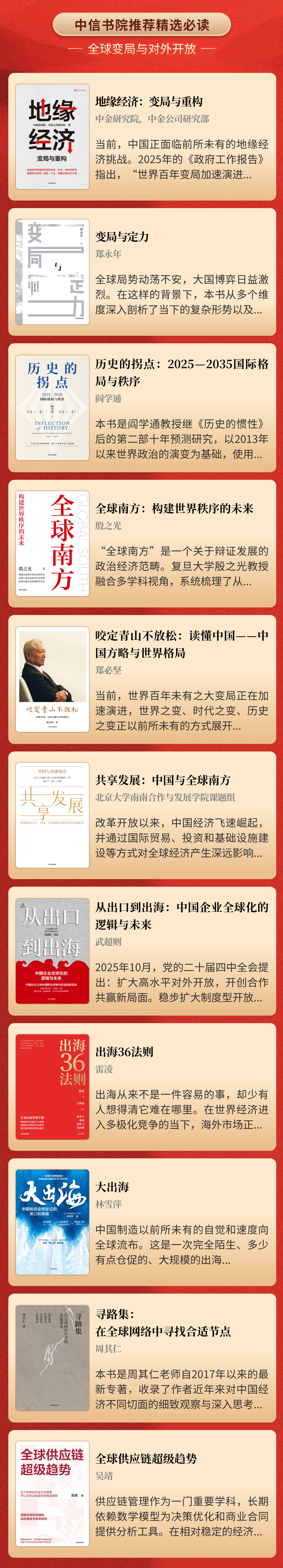 在全球经济格局深度调整的当下,“全球变局与对外开放”成为理解中国发展走向的关键坐标。本期精选一系列权威著作,为您梳理大变局时代的挑战与机遇。