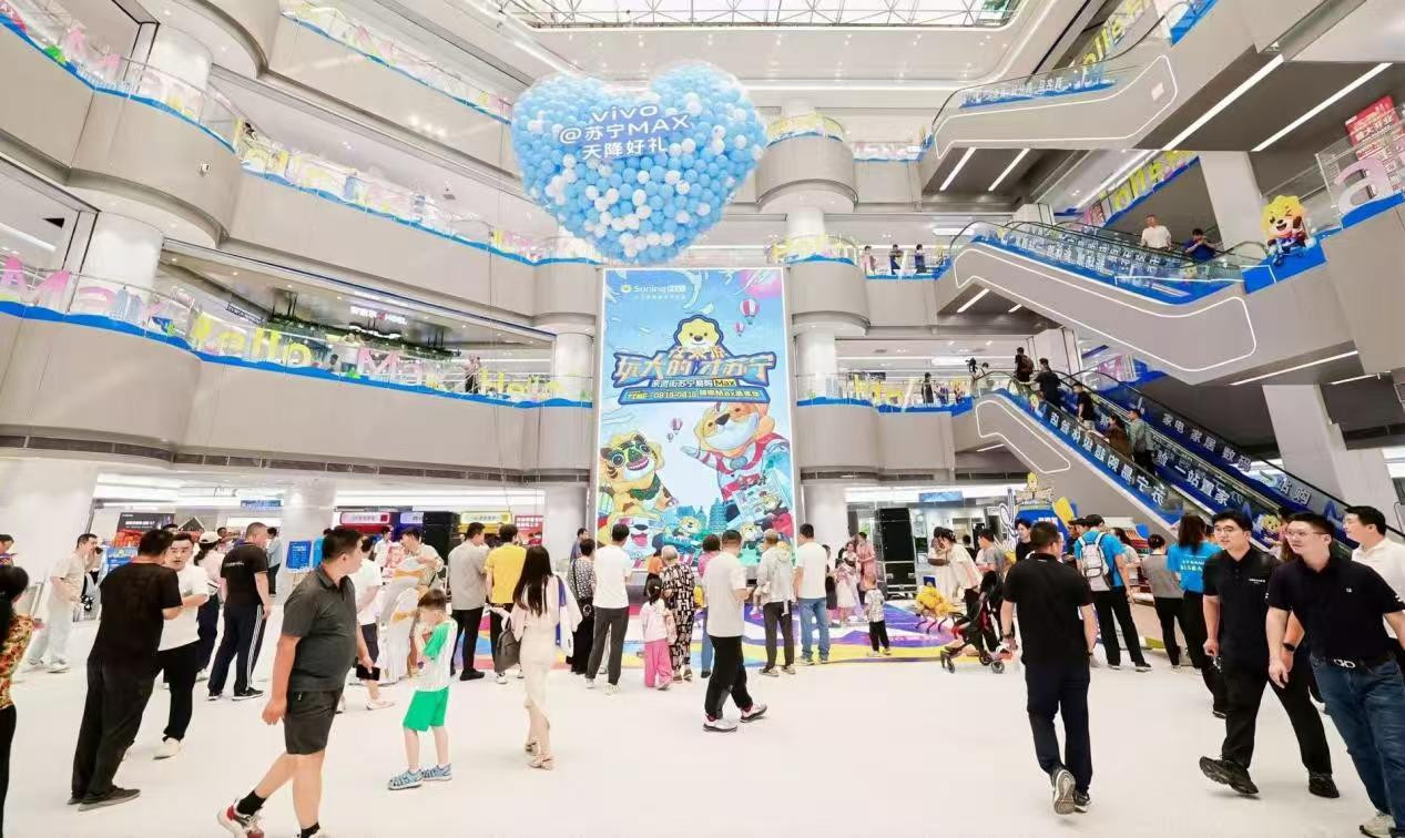 据苏宁易购数据显示,以北京中塔Suning Max店为例,这家2025年新开业的门店,开业两天5万元以上套购订单占比就突破35%,消费升级拉动效应显著。而在南昌八一广场店,开业当日客流突破5万人次,客单价较当地平均水平提升20%。这些门店不再是传统意义上的商品陈列场,而是融合“苏宁私享家”实景样板间、“Fun Zone”前沿科技互动区、电竞客厅等数十个真实可交互体验的新场景。