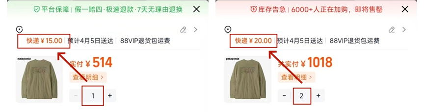 这笔费用以运费的形式呈现:首件商品收15元运费,之后每增加一件额外收取5元。如果订单没有发生退货或换货,费用将全额退回;如果产生退货则相应的运费不再返还。退换货都由消费者承担运费,Patagonia不提供运费险。