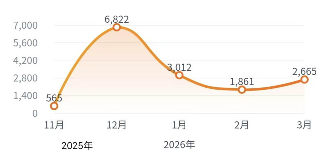 2025年,在大型SUV市场整体扩张的背景下,东风日产探陆全年仅售出5926辆。被寄予厚望的N7及N6也接连折戟。N7销量在2025年8月冲高至过万辆后持续回落;2026年2月跌至587辆。N6在上市首月达到6822辆后迅速失速;2026年3月销量仅为2665辆。