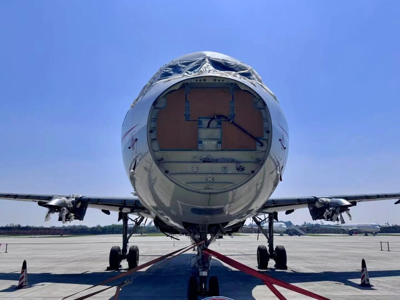 成都的机坪上,已有四架飞机完成这样的“重生”。2026年4月,第五架正在拆解中。