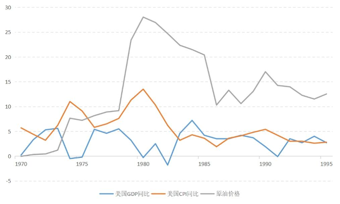 第二,高度依赖外部能源输入的贸易结构。在20世纪70年代至90年代,美国是典型的石油净进口大国。在此背景下,国际油价的暴涨实质上等同于产油国向美国消费者征收了巨额的通胀税,直接侵蚀了居民的实际购买力,并大幅削弱了国内的消费与投资动能。在第二次石油危机中,失控的国际油价直接转化为国内的输入型通胀,推动美国1980年CPI同比涨幅触及13.5%的历史高位。为了应对这种由外部输入引发的恶性通胀,时任美联储主席沃尔克被迫采取了史无前例的激进加息政策。这一强硬举措虽然最终成功驯服了通胀,但也明显压制了国内的投资与消费需求,影响到了经济增速。